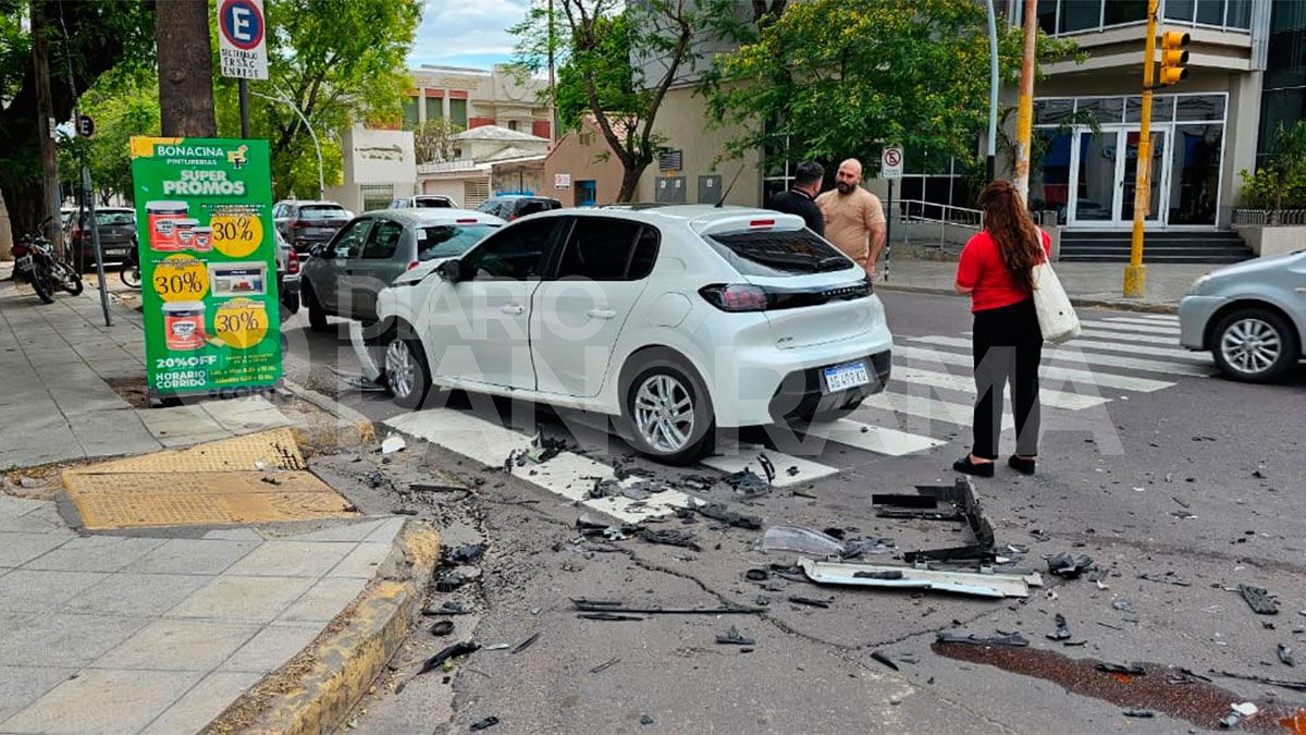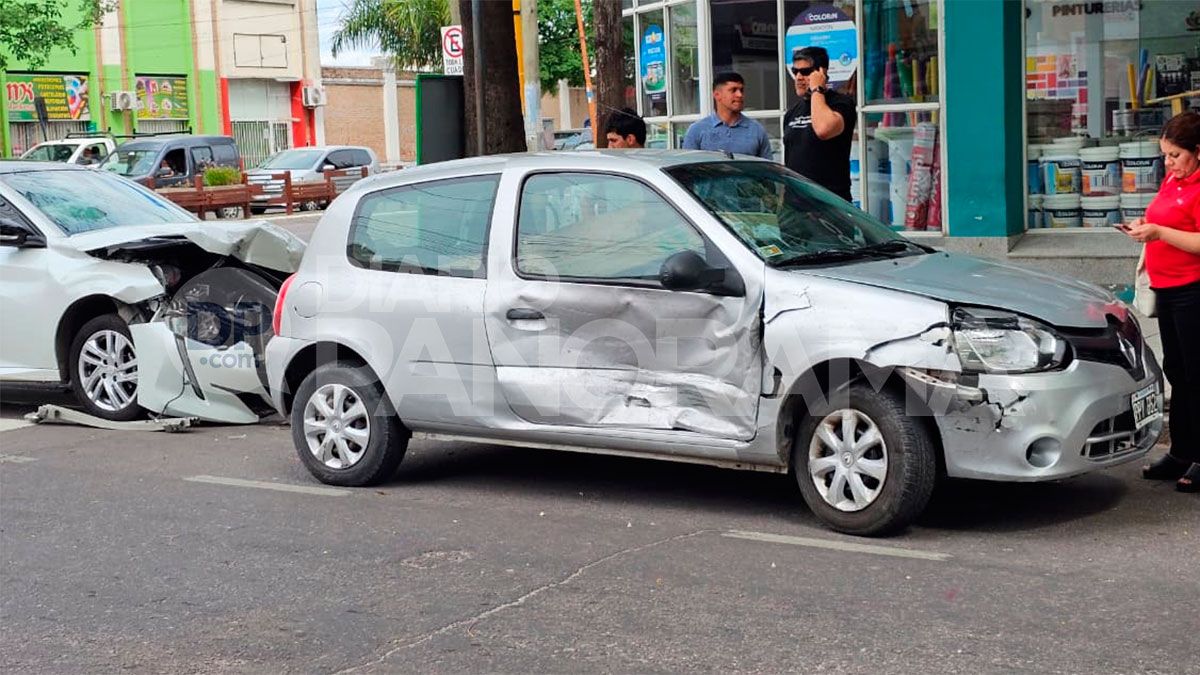 Un Peugeot 208 y un Renault Clio colisionaron este lunes a la siesta en la intersección de Rivadavia y Belgrano.