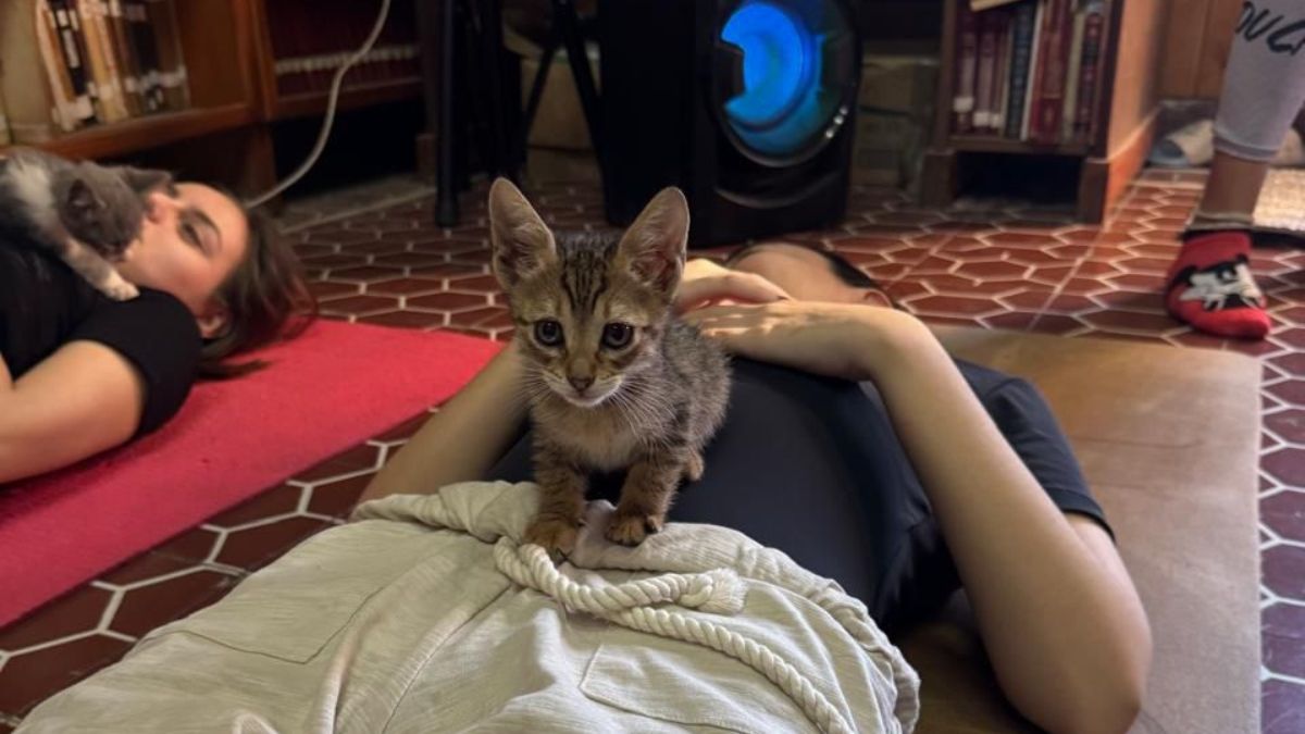 La tarde comenzó con una clase de yoga entre gatos, una experiencia única en la que los participantes pudieron relajarse, conectarse con el entorno y disfrutar de la compañía de los pequeños felinos, que, curiosos y juguetones, acompañaban cada movimiento.