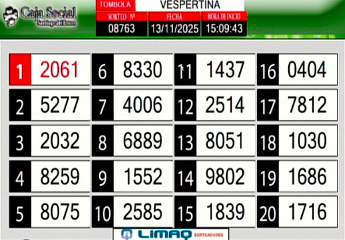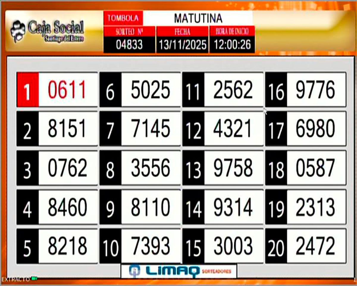 Este jueves 13 de noviembre, como todos los días, se llevó a cabo un nuevo sorteo de la Tómbola Santiagueña.