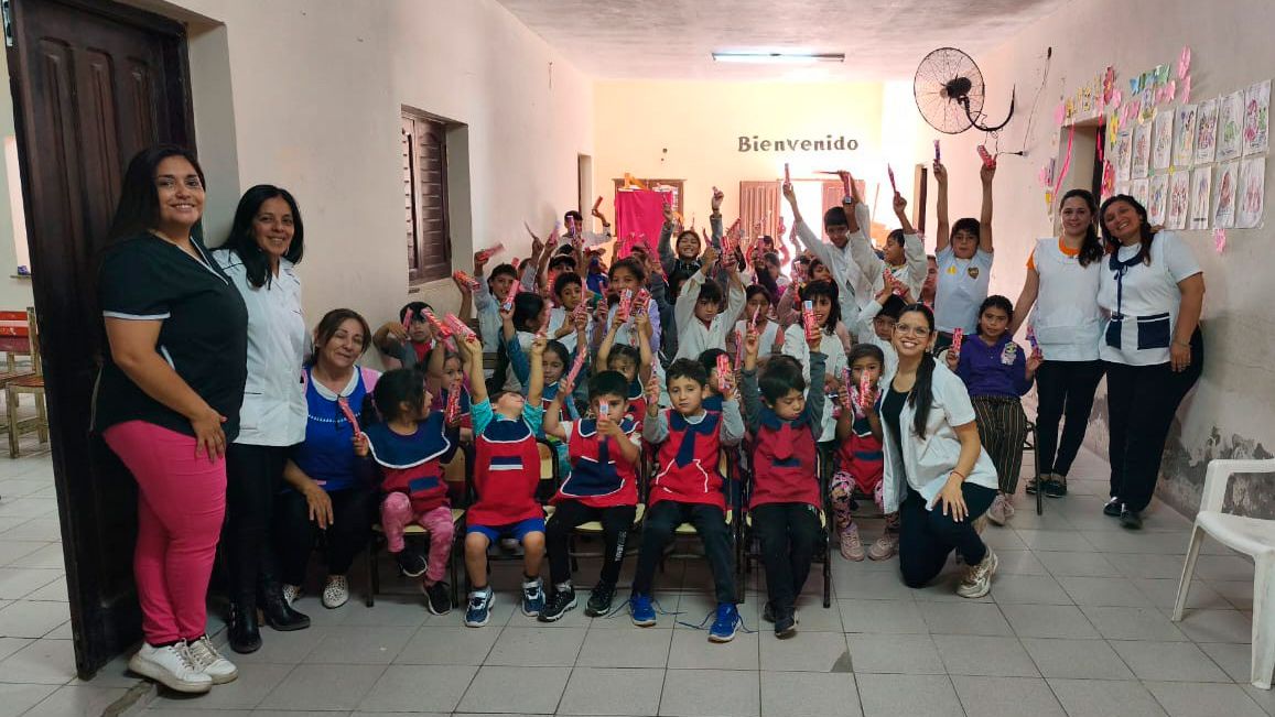Niños de la Escuela Nº 1016 Francisco Cantos Correa y del Jardín de Infantes Nº 134 Inti Huasi, de la localidad de Negra Muerta (departamento Banda), participaron de una jornada de promoción y cuidado de la salud bucodental impulsada por el equipo profesional del área.