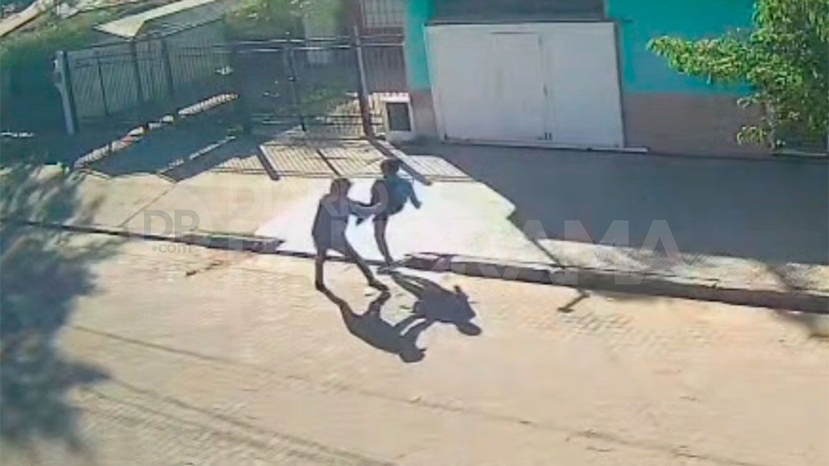 El hecho sucedió durante la mañana de este lunes, en la para de colectivos de la calle 5, en el barrio San Fernando. Todo quedó registrado por una cámara de seguridad.