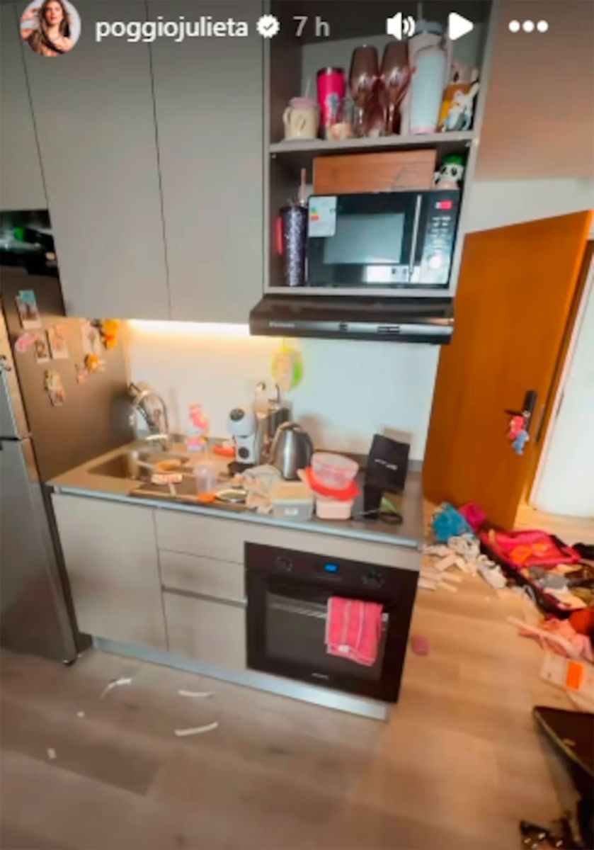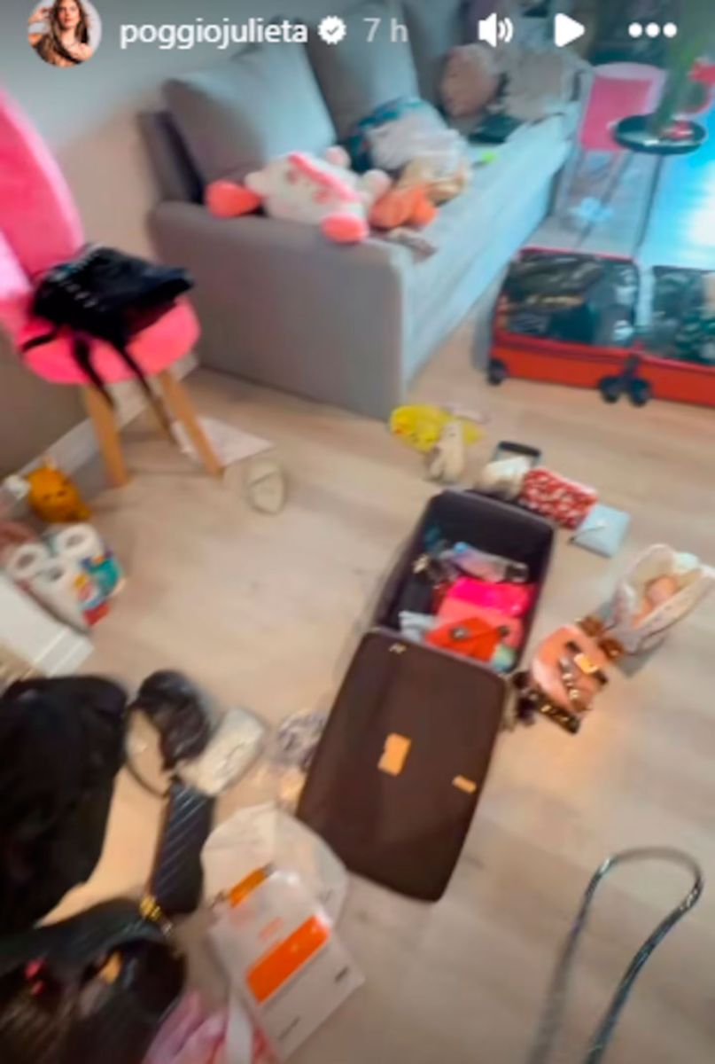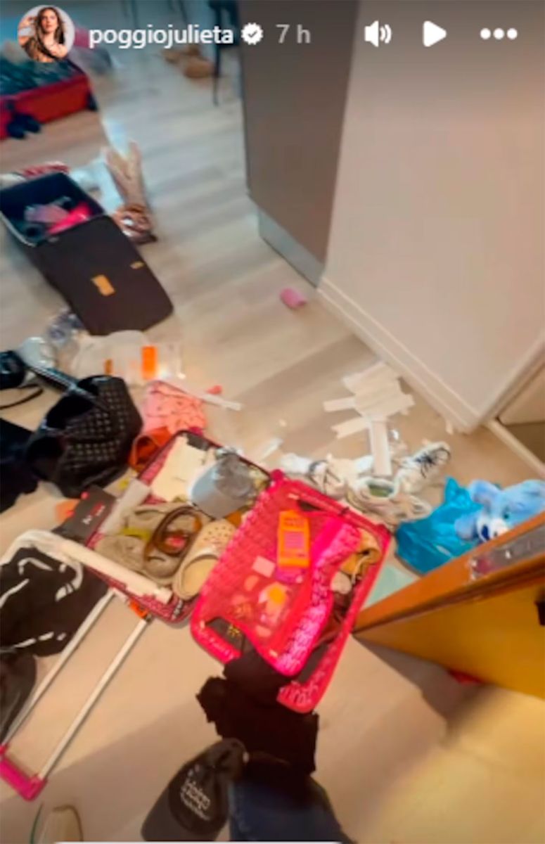“Me avergüenzo porque hace dos días que no quiero entrar para no afrontar la situación. No puedo abrir la puerta y ver el quilombo que tengo”, dijo en una de sus historias de Instagram. La joven mostró imágenes del interior de su casa, donde se veían valijas a medio desarmar, bolsos, ropa y zapatos tirados por el piso, lo que hacía difícil incluso moverse por los ambientes.