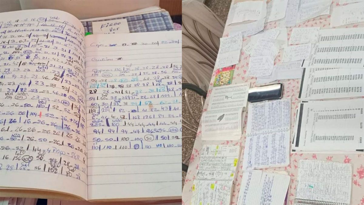 La División Delitos Económicos Banda realizó operativos en dos domicilios donde encontraron cuadernos con anotaciones, planillas de sorteos, cartelería y comprobantes usados para apuestas ilegales.