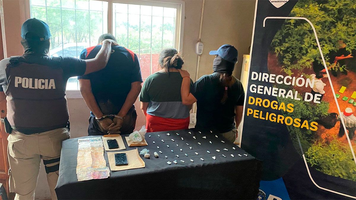 Durante el allanamiento, el personal policial logró el secuestro de 45 envoltorios de sustancia blanquecina tipo cocaína, con un peso total superior a 23 gramos, además de recortes de nylon utilizados para su fraccionamiento, dos teléfonos celulares de alta gama y la suma de $121.600 en efectivo.