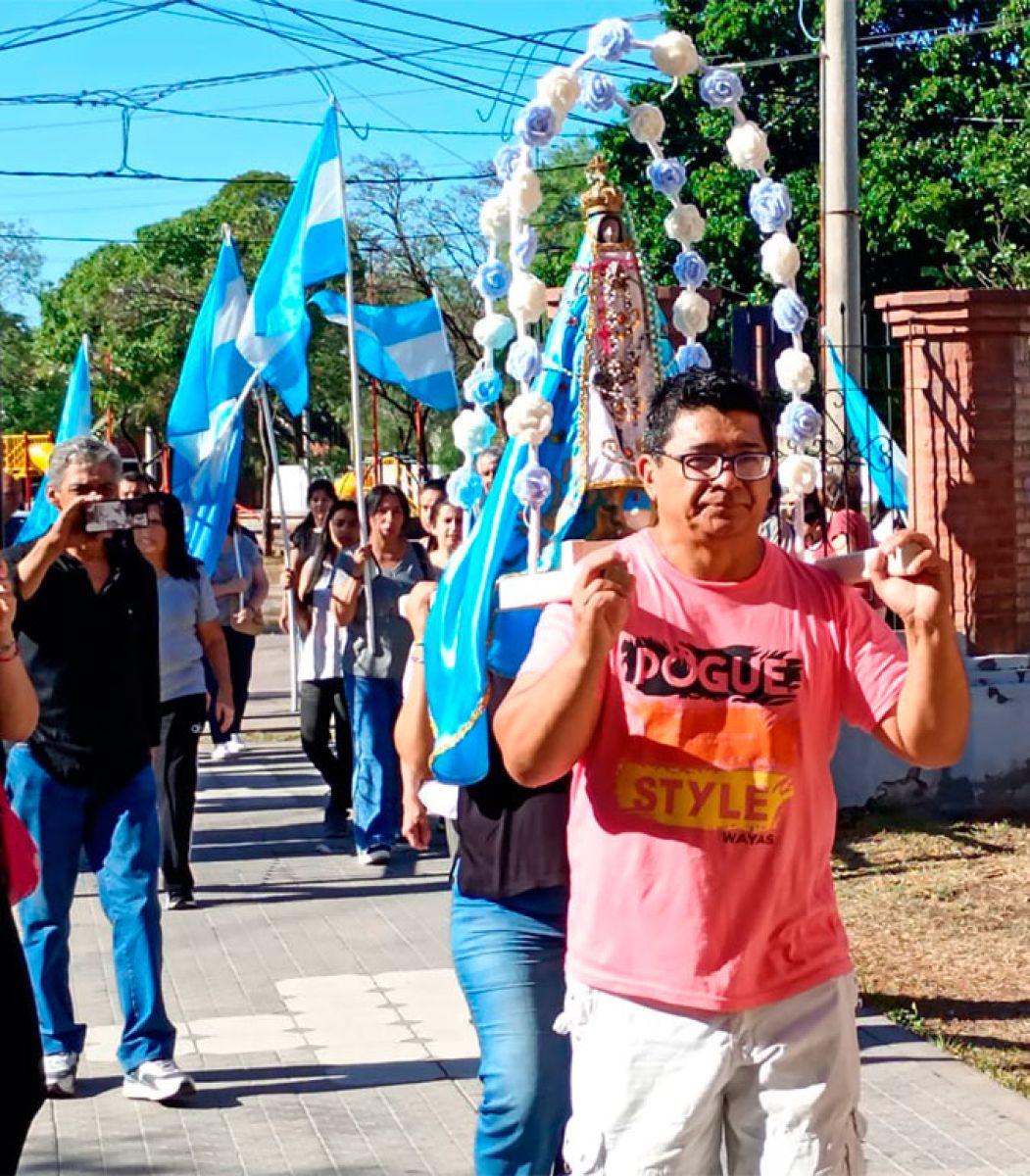 Las actividades comenzaron minutos después de las ocho de la mañana con una procesión que se realizó por diferentes calles del barrio. La imagen de la Virgen María llegó al templo de Viamonte y Alberti a las 9 y el sacerdote Cristian Viscardi, de la Congregación de los Hermanos Misericordistas de Santiago del Estero, celebró la Santa Misa.