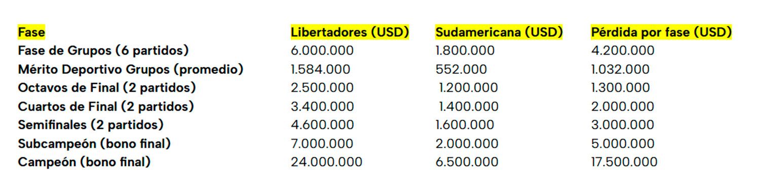 El golpe no solo pasa por el prestigio internacional. Las arcas de River sufrirán una pérdida profunda, ya que la diferencia de premios entre ambas competencias es enorme. Con los valores informados por la Conmebol en 2025, la sola participación en la Libertadores otorga 6 millones de dólares, mientras que ingresar a la Sudamericana apenas garantiza 1,8 millones. Una brecha inmediata de 4,2 millones, sin contar las fases posteriores.