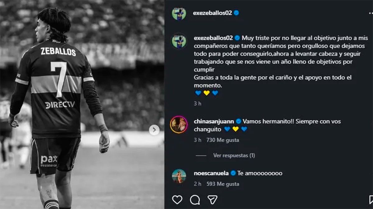 La eliminación de Boca a manos de Racing en la semifinal del Torneo Clausura dejó múltiples repercusiones, y una de las más fuertes llegó desde las redes sociales de Exequiel Zeballos, quien expresó su tristeza horas después del polémico cambio que lo dejó afuera del tramo decisivo del partido.