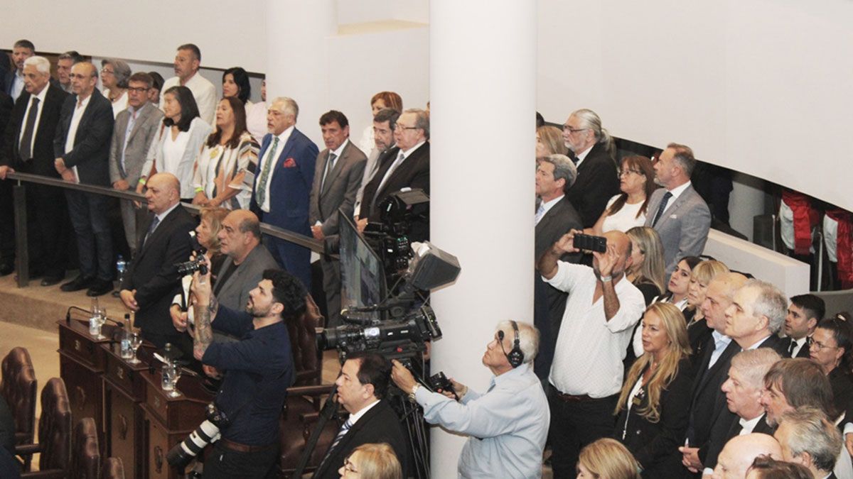 El paso siguiente fue la lectura del acta pertinente, a cargo de la escribana General de Gobierno, Esc. María Virginia Viaña, la que fue rubricada por Zamora, Suárez y Silva Neder, para pasar a la toma de juramento de rigor al flamante gobernador y entrega de los atributos de mando que corresponden a su cargo.
