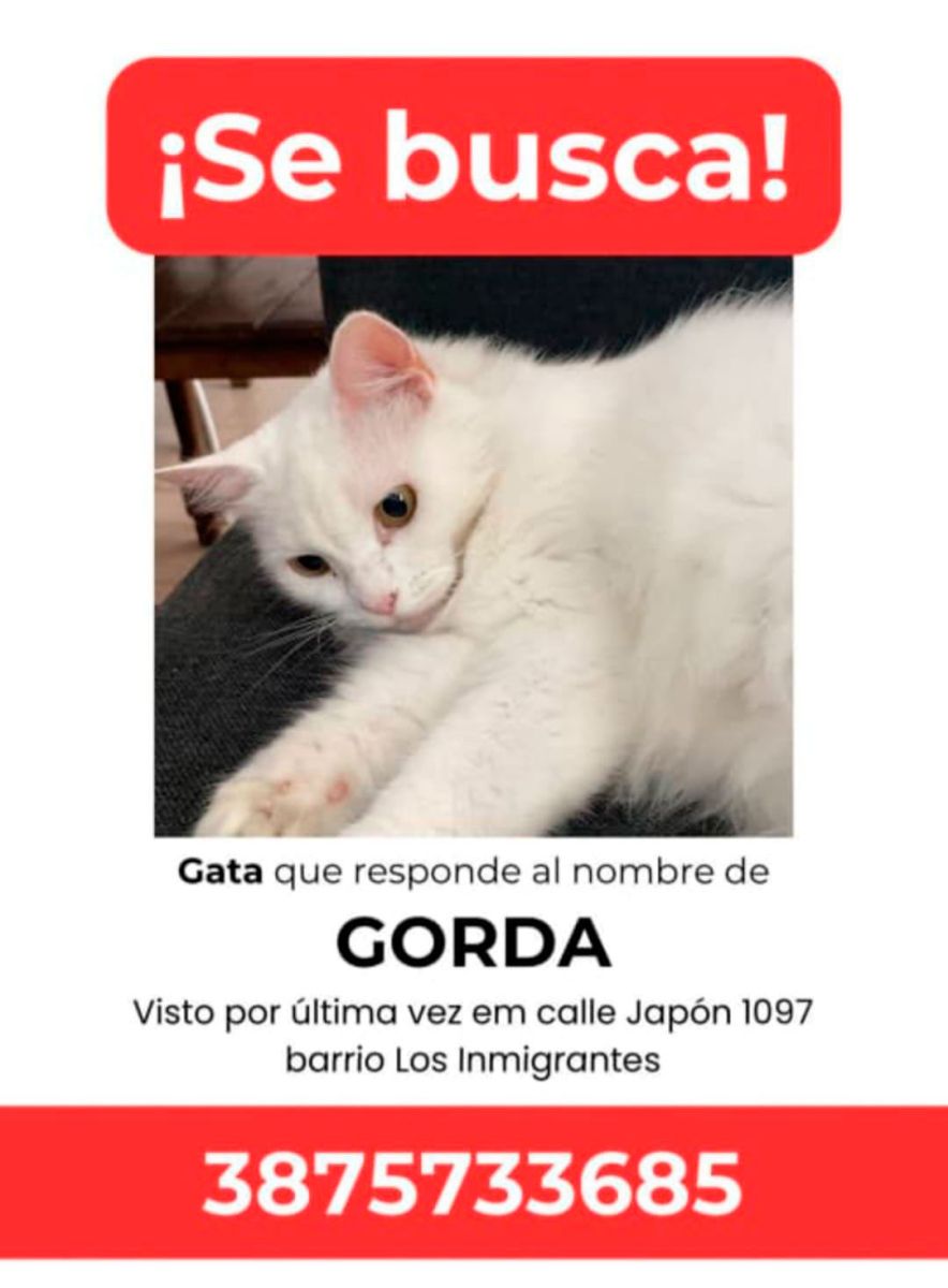 Sí, la hermosa gatita fue vista por última vez en calle Japón, en el barrio Los Inmigrantes, y hasta el momento no se conocieron más noticias que permitan saber dónde se encuentra.