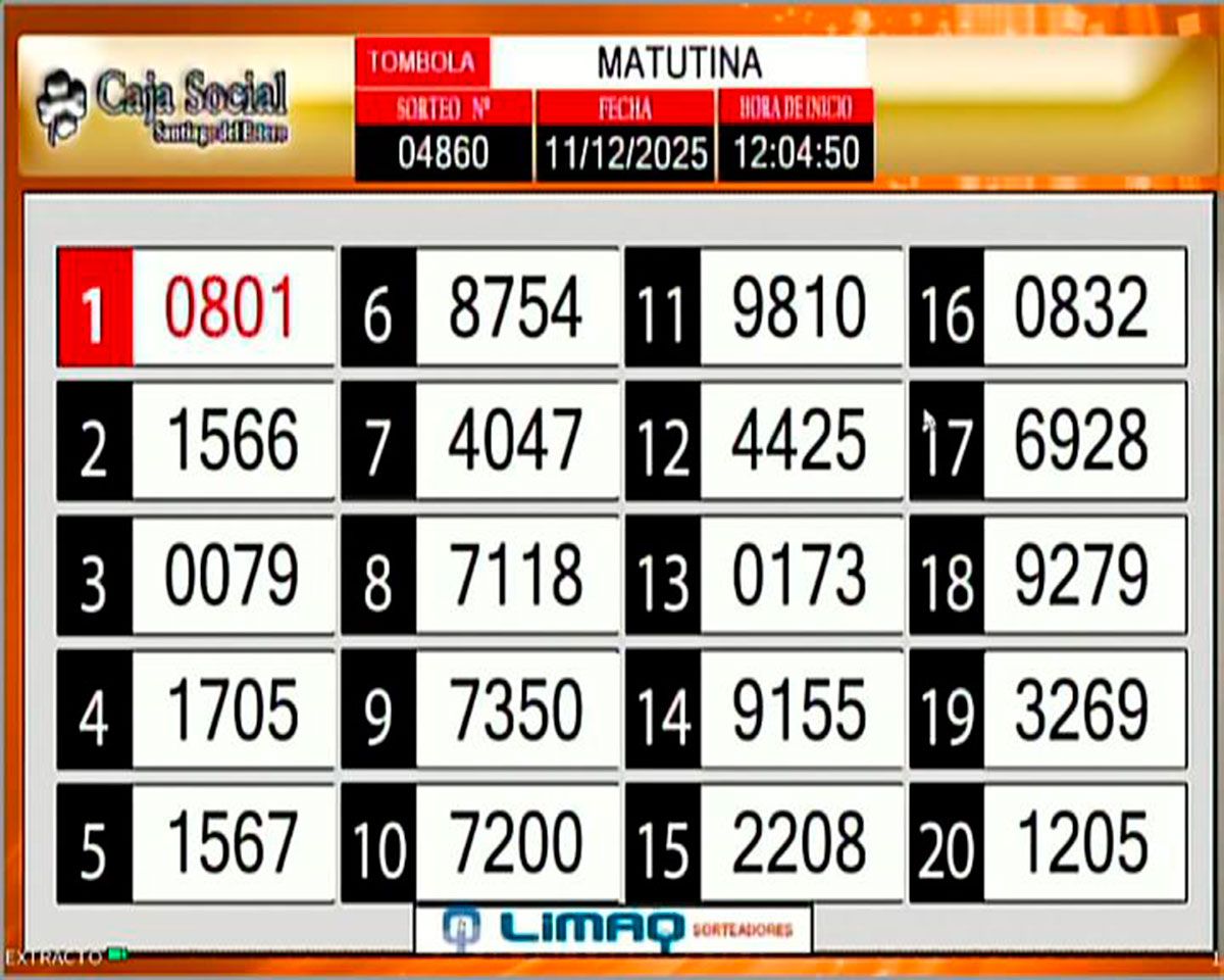 Este jueves 11 de diciembre, como todos los días, se llevó a cabo un nuevo sorteo de la Tómbola Santiagueña.