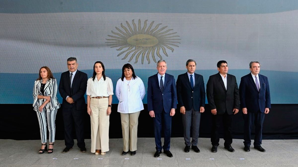Junto al titular del Ejecutivo estuvieron el vicegobernador Carlos Silva Neder; los ministros de Obras Públicas, Aldo Hid; de Educación, Mariela Nassif; de Desarrollo Social, Ángel Niccolai, y de Producción, Néstor Machado. Además del secretario de Obras Pública, Jorge Zuaín, y la presidente del Consejo General de Educación, María Elena Herrera, quienes al llegar fueron recibidos por el comisionado de Sabagasta, Miguel Maldonado.