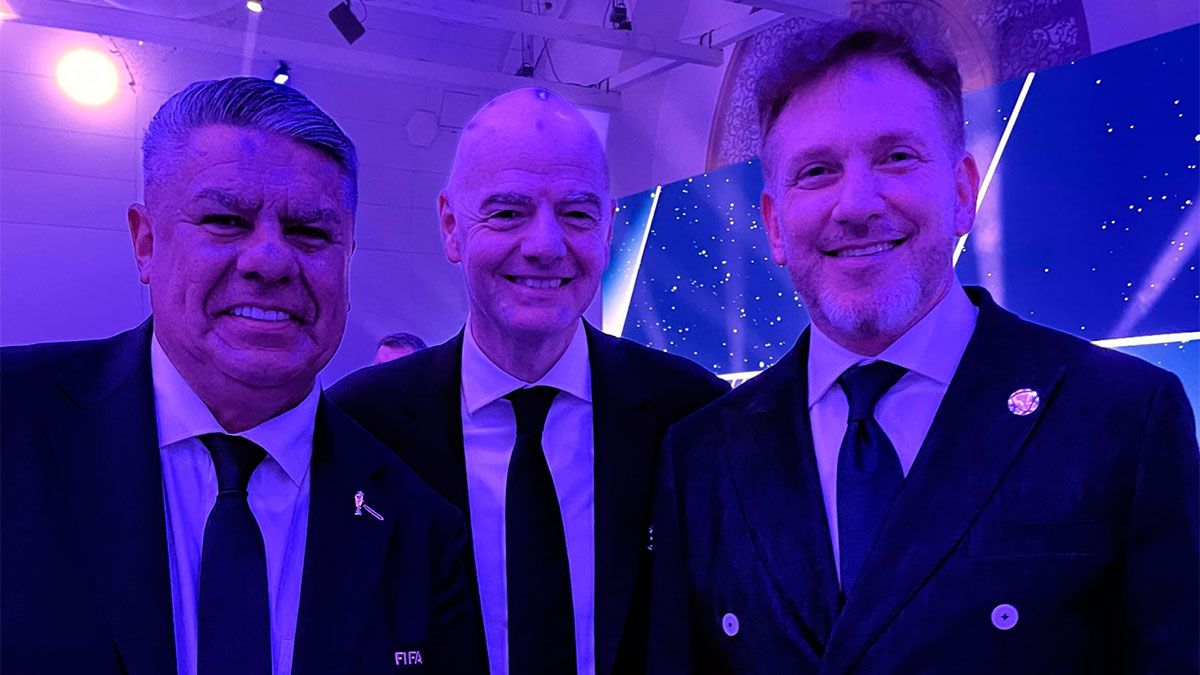 El presidente de la AFA compartió el encuentro con Gianni Infantino, titular de la FIFA, y Alejandro Domínguez, presidente de la Conmebol, a quienes agradeció públicamente por el respaldo recibido. “Un orgullo enorme ser parte. Siempre con el foco puesto en el crecimiento del fútbol a nivel mundial”, expresó Tapia en sus redes sociales tras la reunión.