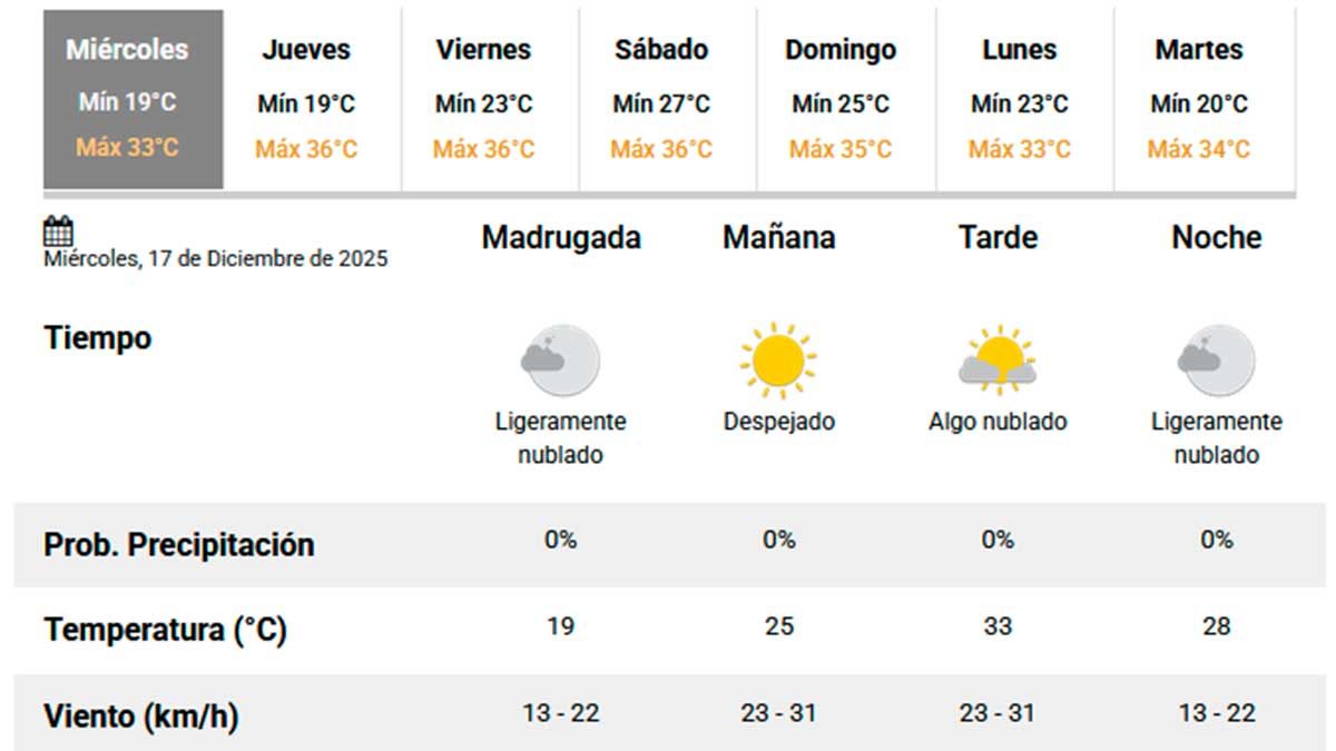 El Servicio Meteorológico Nacional anticipa una jornada con condiciones estables y temperaturas moderadas para este miércoles 17 de diciembre en Santiago del Estero.