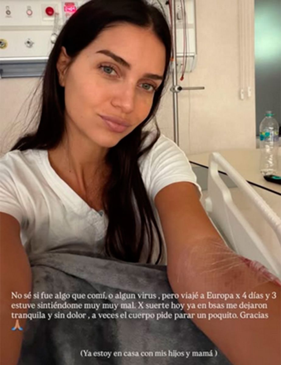 La respuesta llegó de sus propias palabras a través de una historia de Instagram: “No sé si fue algo que comí o algún virus, pero viajé a Europa por cuatro días y tres estuve sintiéndome muy mal”. Así la modelo explicó, de manera franca, a quienes colmaron su bandeja de mensajes con inquietudes. “Por suerte hoy ya en Buenos Aires me dejaron tranquila y sin dolor. A veces el cuerpo pide parar un poquito. Gracias”. A continuación, en letras más pequeñas la modelo agregó que ya se encontraba en su casa con su mamá y sus hijos.