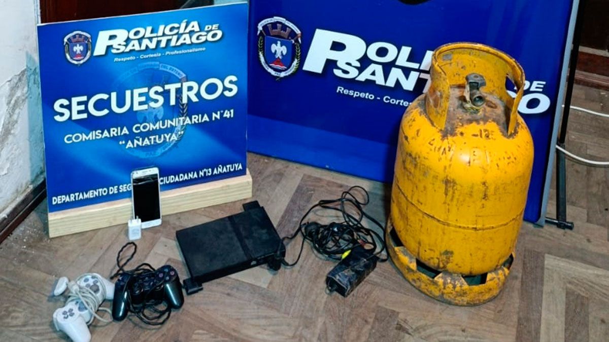En el lugar, los efectivos secuestraron una garrafa de 10 kilogramos, una Play Station Sony con su cargador y videojuegos, y un teléfono celular Samsung J2 también con cargador.