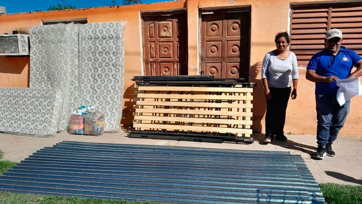 La ayuda consistió en la entrega de chapas, colchones, frazadas, mobiliario y unidades alimenticias.