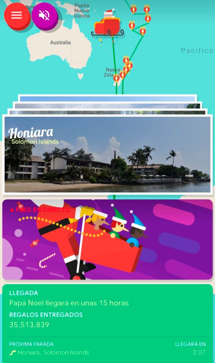 En la noche del 24 de diciembre, Google activa su función más esperada: una simulación del viaje de Papá Noel alrededor del mundo, desarrollada con tecnología de Google Earth. El sistema muestra cómo el trineo avanza huso horario por huso horario, realizando paradas en distintas ciudades para “entregar” los regalos.