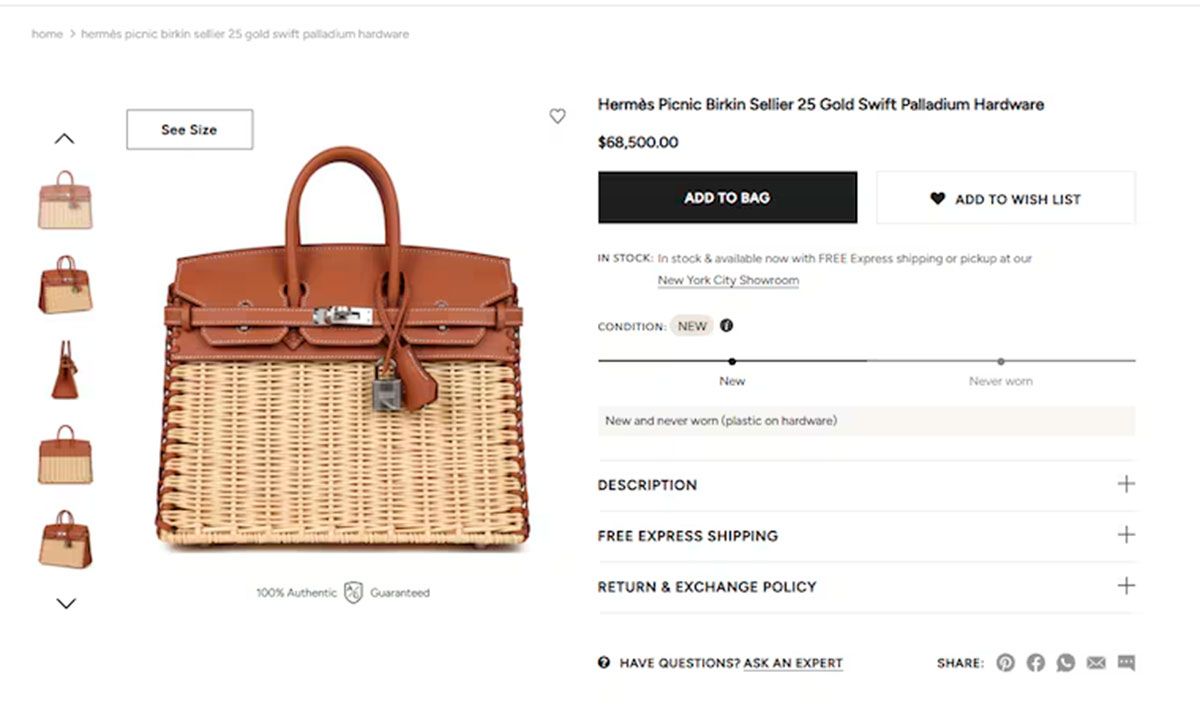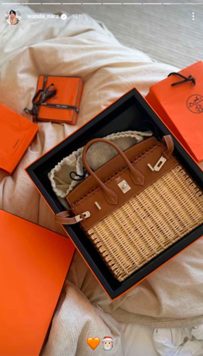 El bolso es nada más y nada menos que de Hermès, una de las marcas de lujo más elegidas por Wanda. Su modelo es una Picnic Birkin Gold Swift Palladium Hardware.