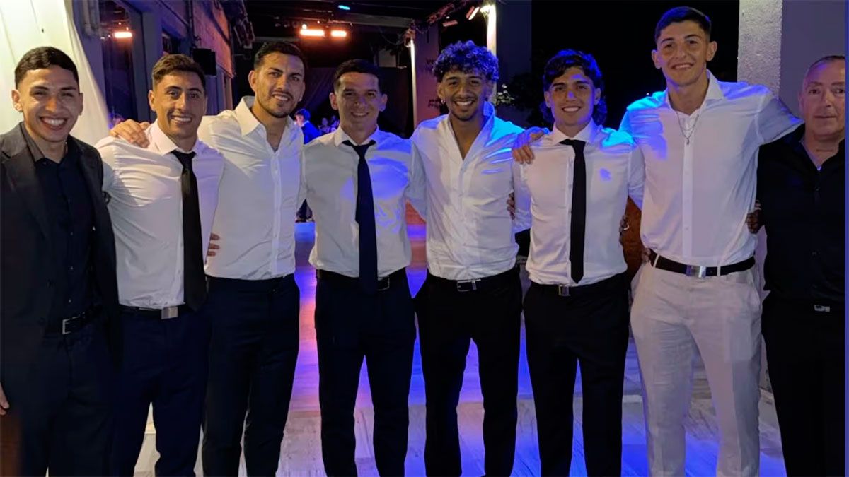 En la foto que comenzó a circular se los puede ver a Leandro Paredes, Exequiel Zeballos, Miguel Merentiel, Leandro Brey y Lautaro Blanco. Los cuatro primeros viajaron en un avión privado, junto a sus parejas, para acompañar al mediocampista y a su esposa Sol Amsler en una noche especial.