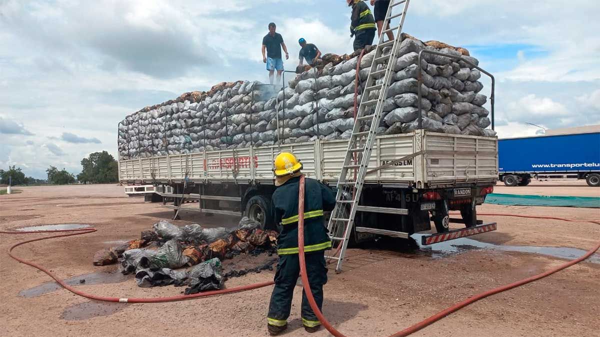 En la tarde de este domingo se registró un principio de incendio en el playón de una estación de servicio ubicada a la vera de la Ruta Nacional 34, en la ciudad de Selva. El incidente involucró a un camión que transportaba una carga de carbón vegetal.
