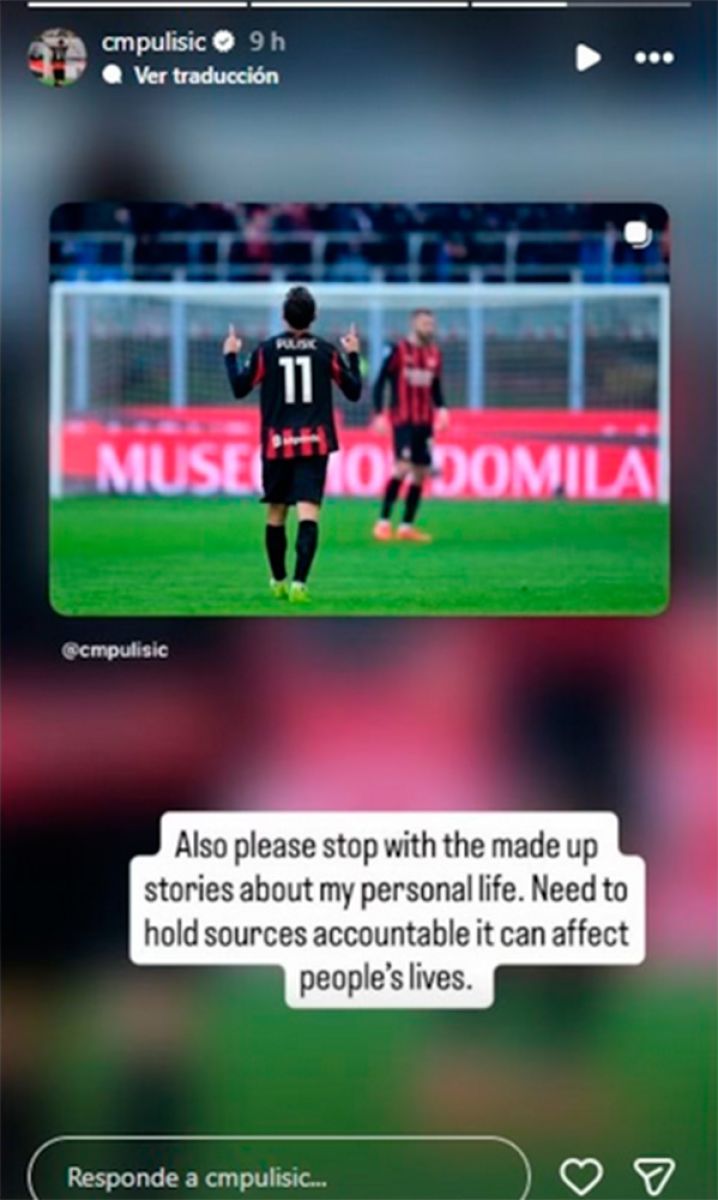 Sin embargo, el propio Christian Pulisic se encargó de desmentirlo directamente: bajo otra publicación que señalaba su supuesto noviazgo con Sydney Sweeney, escribió en los comentarios: “Noticias falsas, chicos, dejemos de lado este rumor absurdo”.