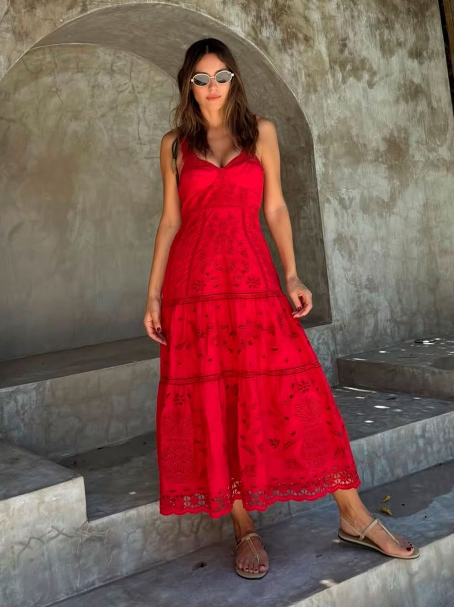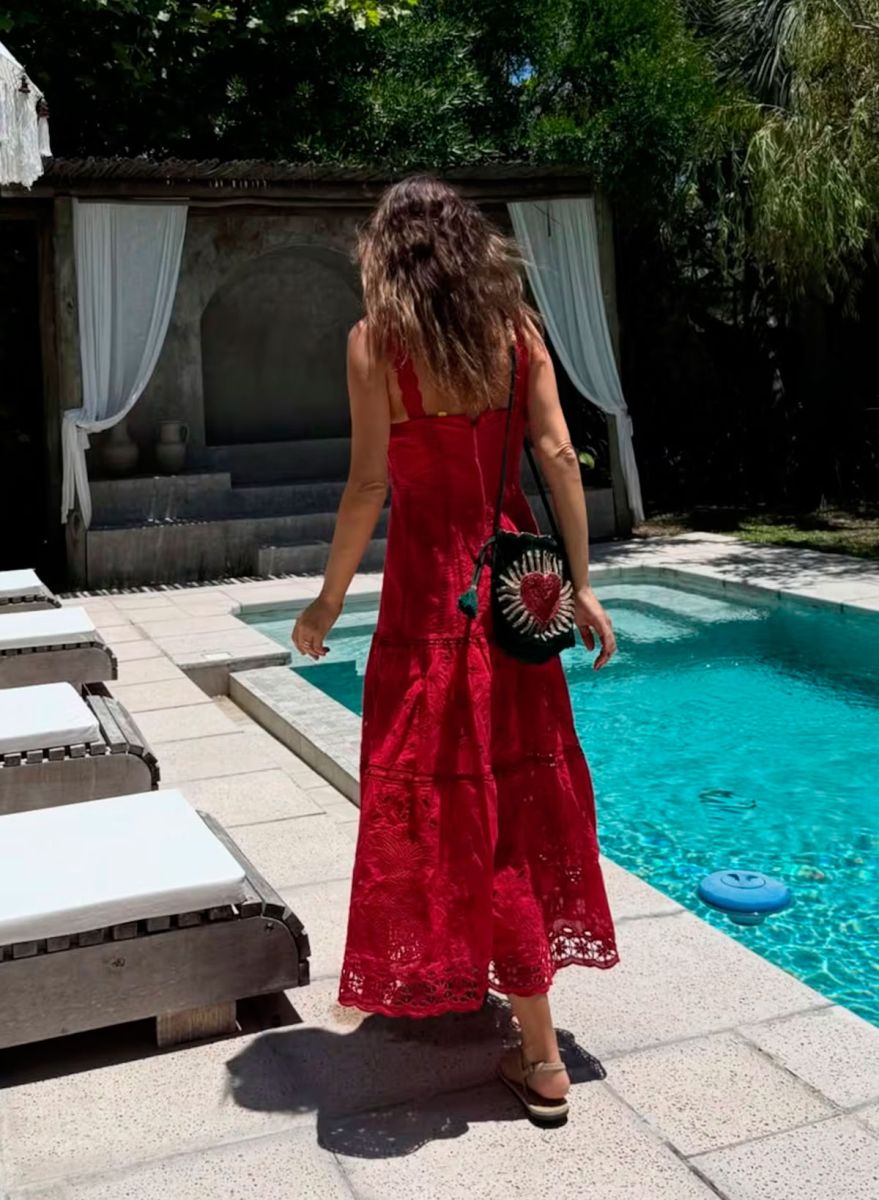 El intenso color rojo no solo realza los detalles del vestido, sino que además potencia el bronceado, transformándolo en una pieza protagonista tanto para paseos diurnos como para salidas relajadas en la costa esteña. Una vez más, Pampita reafirmó su lugar como referente indiscutida de la moda y el estilo.
