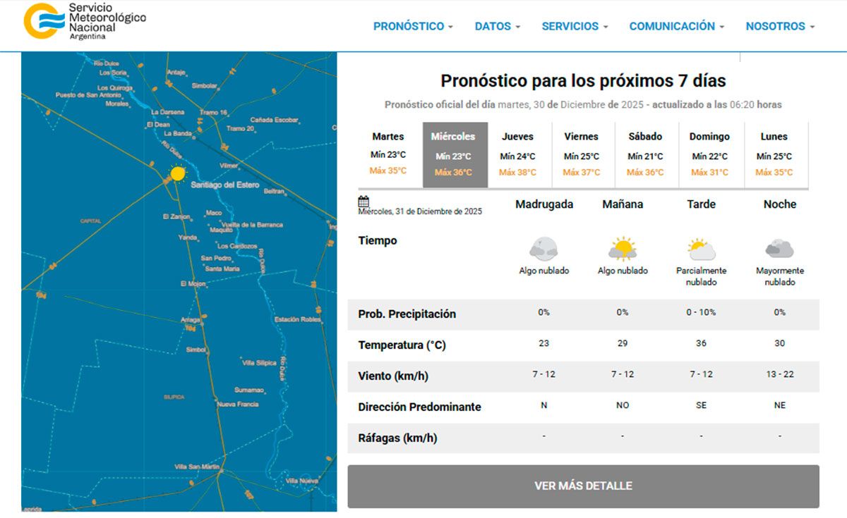 Luego de una Navidad marcada por la inestabilidad y las precipitaciones, todas las miradas están puestas en el tiempo para los festejos de Año Nuevo. En ese contexto, el Servicio Meteorológico Nacional (SMN) dio a conocer su pronóstico para este 31 de diciembre y 1 de enero, en la antesala del cierre del 2025 y el comienzo del 2026.
