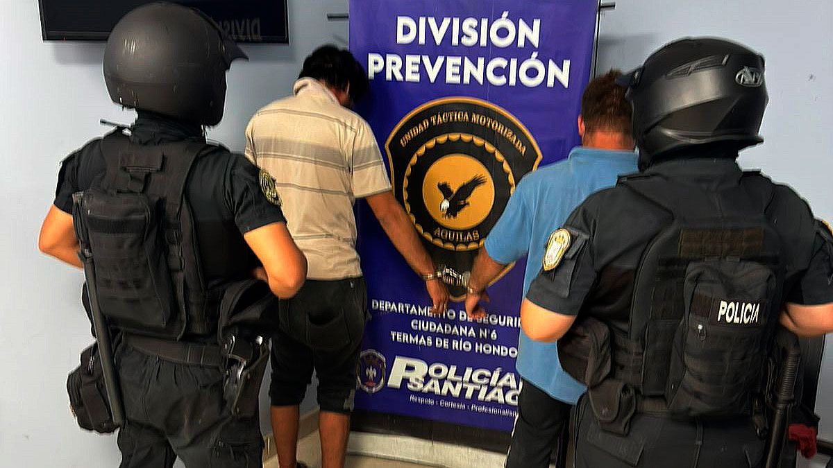 Dos hombres oriundos de la ciudad Capital fueron aprehendidos en Las Termas de Río Hondo, acusados de estar vinculados al robo de una motocicleta sustraída desde un estacionamiento ubicado en la intersección de calles Tacuarí y Juan Bautista Alberdi – Ruta 9, en una zona céntrica y de alta circulación.