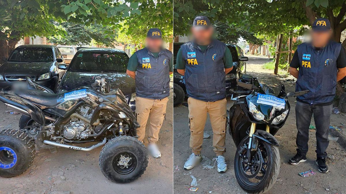 Durante los procedimientos fueron detenidos dos hombres argentinos, mayores de edad. Además, se incautó un revólver calibre .22, un revólver calibre .32, una pistola calibre .380, numerosas municiones y cargadores de distintos calibres, siete motocicletas (algunas de alta cilindrada), un cuatriciclo, tres vehículos y otros elementos de interés para la causa.
