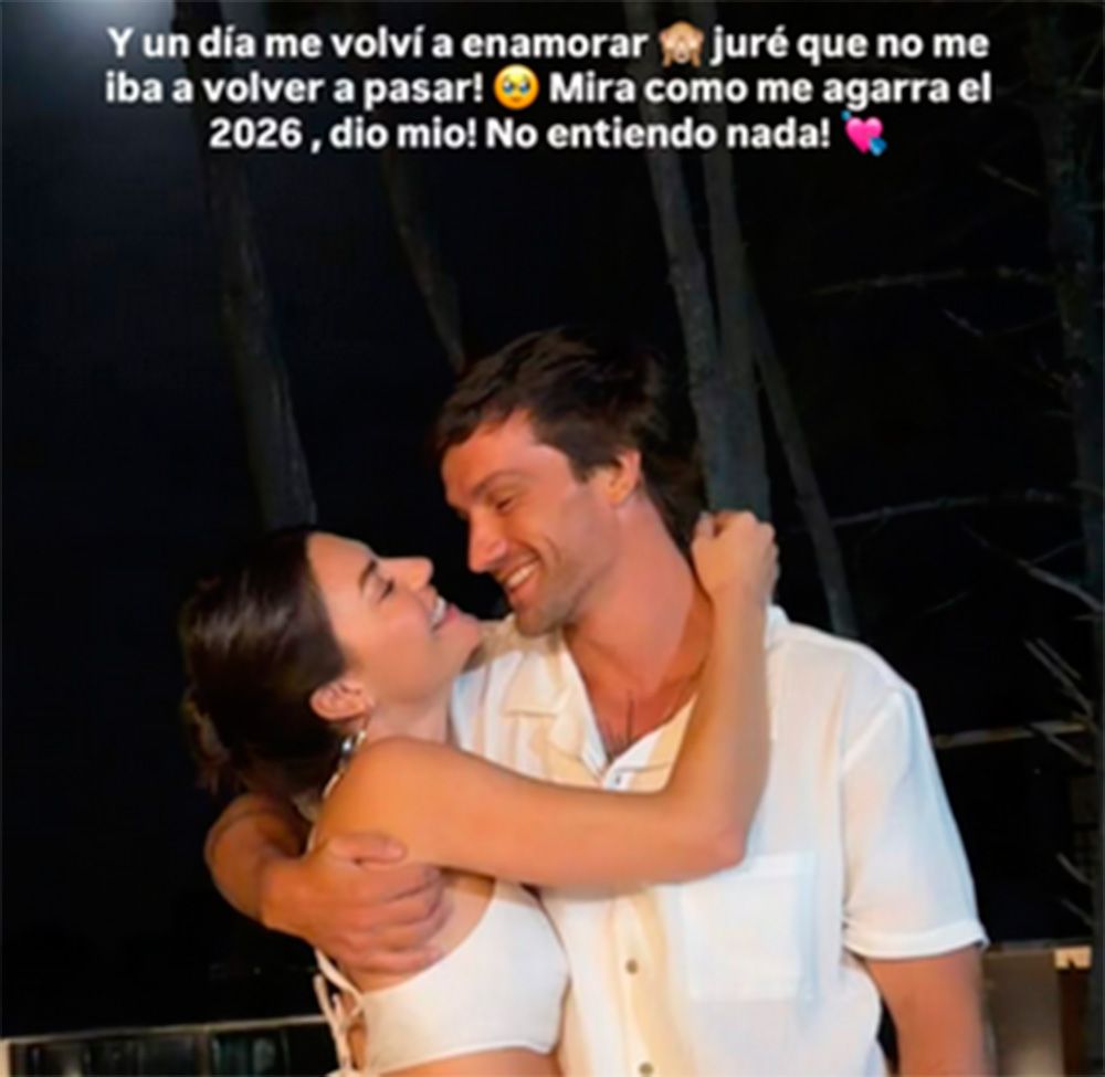 Luego, compartió en sus historias de Instagram, una foto abrazada junto a su novio y sumó un tierno mensaje: “Y un día me volví a enamorar. Juré que no me iba a volver a pasar. Mirá como me agarra el 2026, Dios mío no entiendo nada”