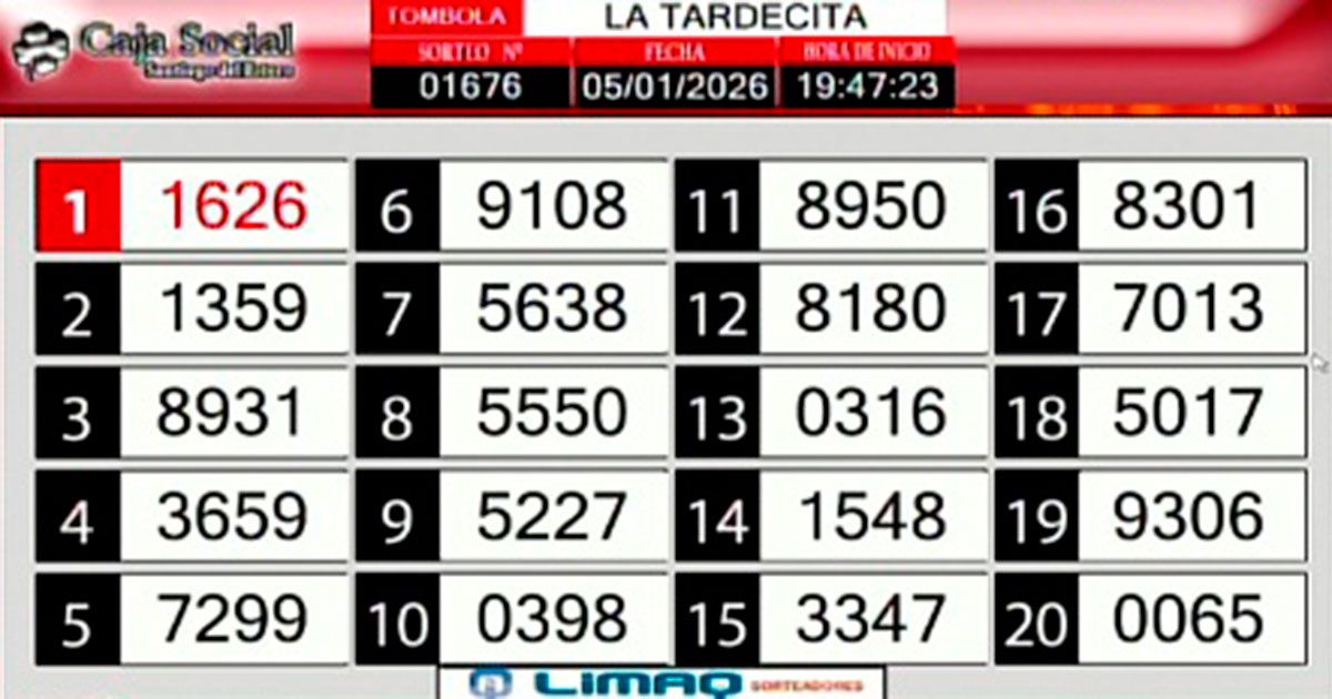 La lista completa de números del sorteo Tardecita: