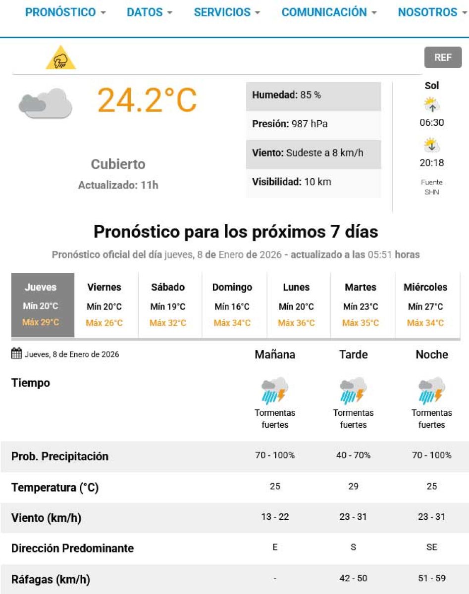 "Estos sistemas son bastante comunes en nuestro país, se desplazan de oeste a este y provocan algunos fenómenos (aunque no siempre), principalmente lluvia y ráfagas", agrega el organismo nacional.