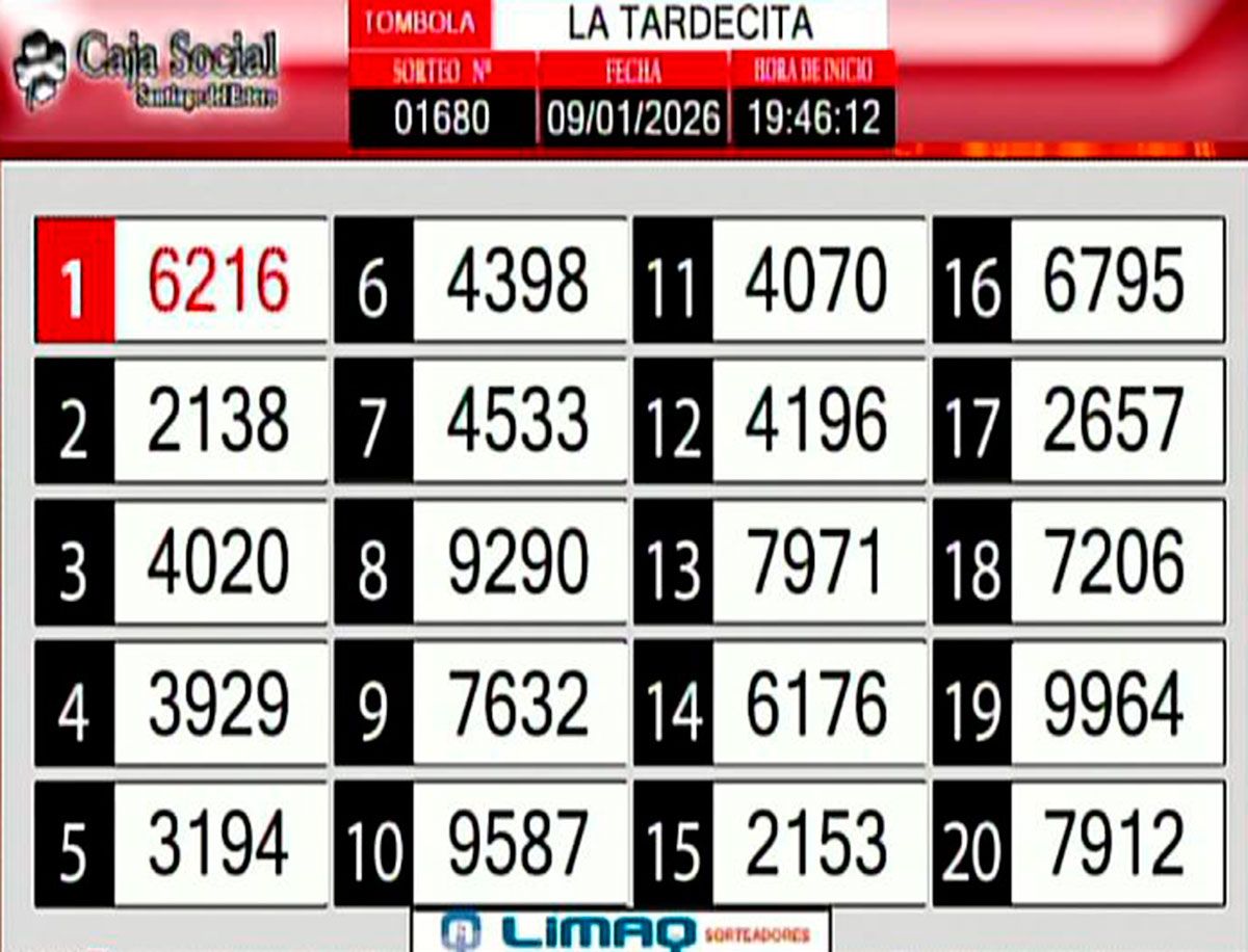 Este viernes 9 de enero, como todos los días, se llevó a cabo un nuevo sorteo de la Tómbola Santiagueña.