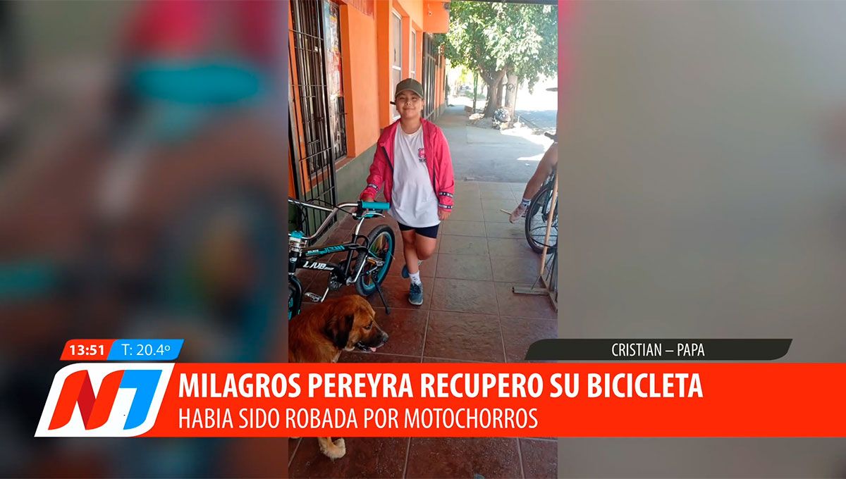 La buena noticia se conoció este viernes y fue confirmada por Cristian, el padre de la niña, quien dialogó en vivo con Noticiero 7. “Gracias a Dios pudimos encontrar la bicicleta de mi niña. Estamos muy agradecidos con los vecinos y con la Policía, que se movieron rápido”, expresó.