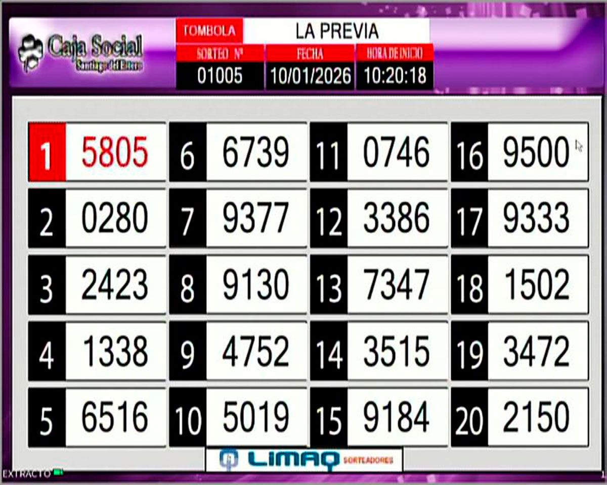 Este sábado 10 de enero, como todos los días, se llevó a cabo un nuevo sorteo de la Tómbola Santiagueña.