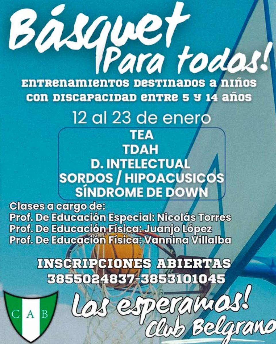 En el club Belgrano comenzó el Campus “Básquet para Todos”, una iniciativa destinada a niños y niñas con discapacidad, que busca unir el deporte, el juego y el compañerismo en un espacio de aprendizaje, inclusión y desarrollo personal.