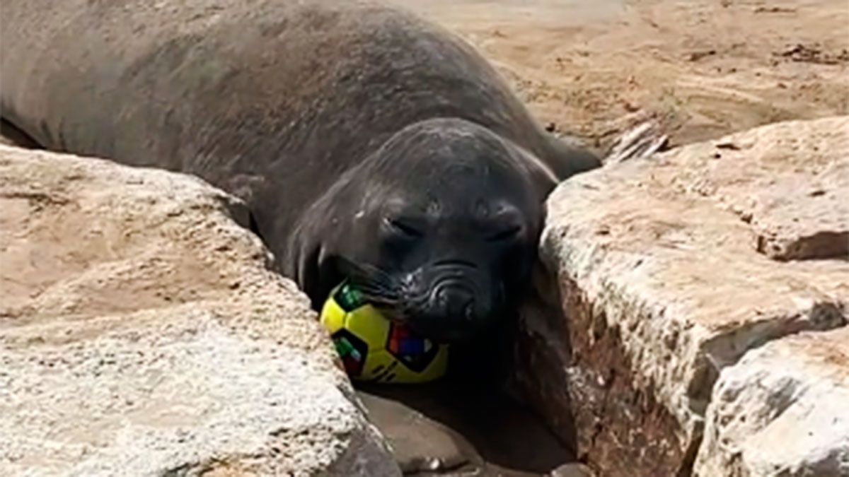 Una familia vivió un momento insólito cuando un elefante marino interrumpió su juego, se acercó a la orilla y se llevó la pelota nueva que estaban usando. Mirá.