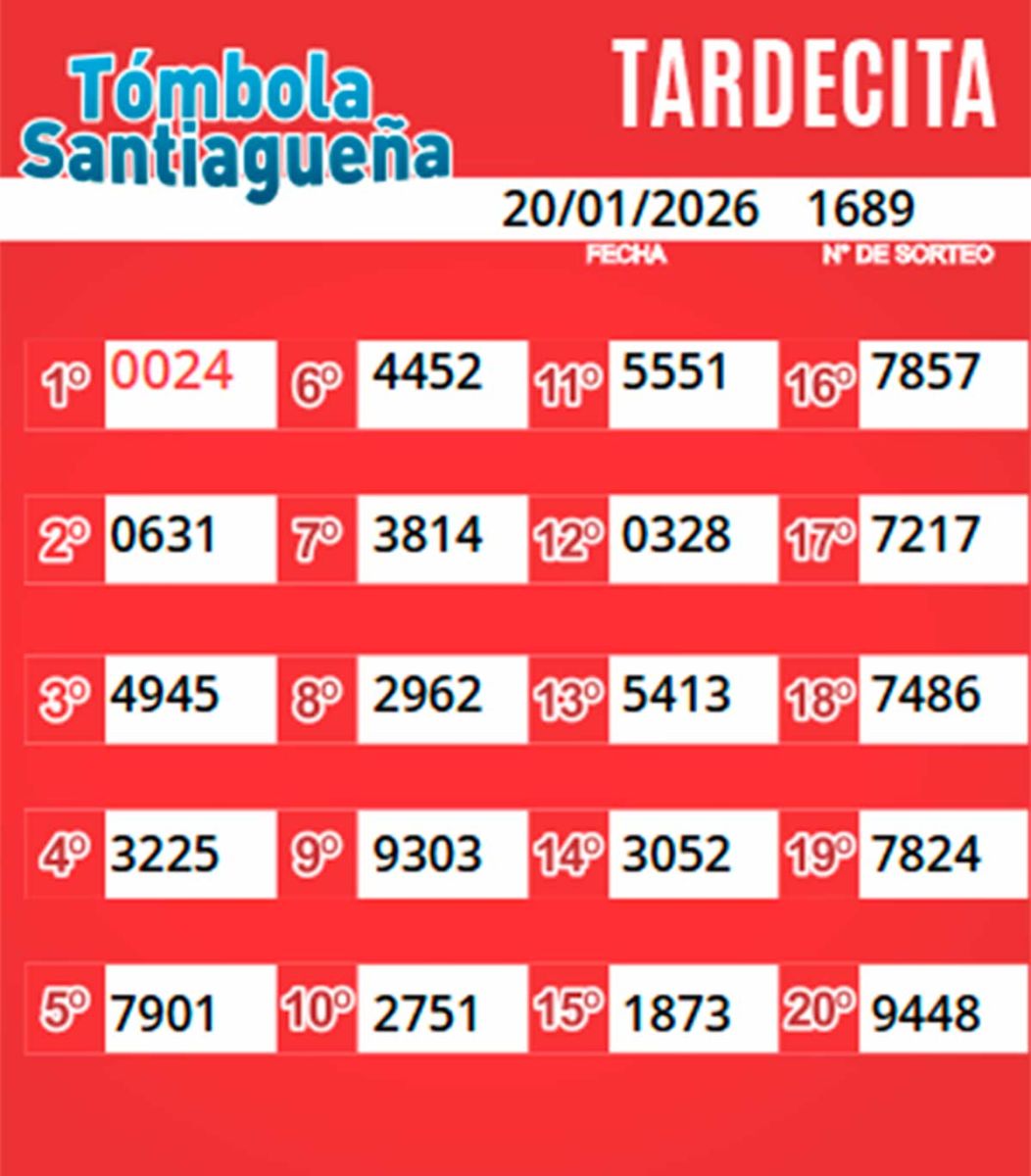 Este martes 20 de enero, como todos los días, se llevó a cabo un nuevo sorteo de la Tómbola Santiagueña.