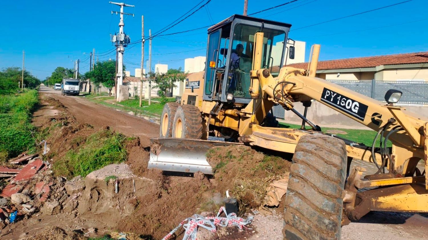 Avanzando con el plan de mantenimiento de la red vial, la Dirección de Obras Públicas de la Capital realizó mejoras en el barrio Los Flores Ampliación, sobre la calle Río Dulce, entre Laguna de los Toros y el Desagüe Principal Sur.