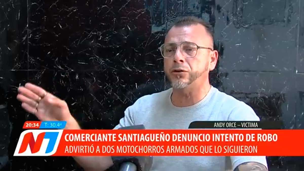 Andy Orce, comerciante santiagueño, relató el tenso momento que vivió al evitar un intento de asalto por parte de dos motochorros en pleno centro de la ciudad, en un hecho ocurrido al mediodía del martes. El hombre brindó su testimonio a Noticiero 7, donde contó cómo advirtió que estaba siendo seguido y cómo logró frustrar el ataque.