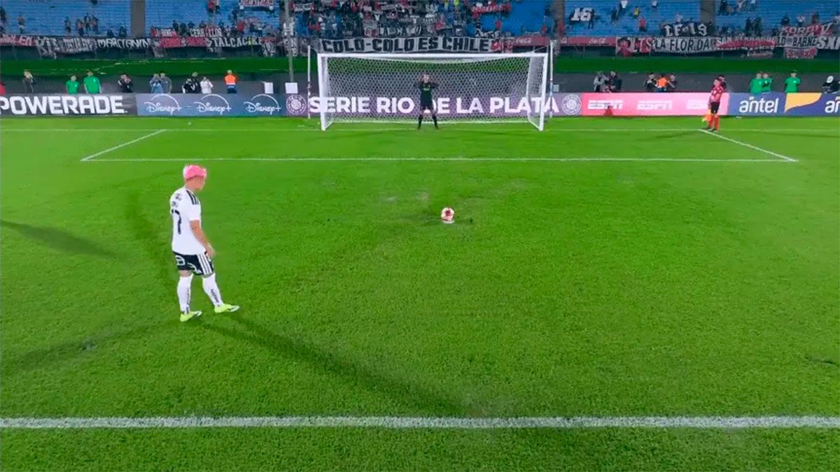 En una tanda interminable y llena de errores entre Colo Colo y Peñarol, el jugador intentó picar su remate, falló de manera insólita y luego se tiró al piso con evidentes dolores en la rodilla.