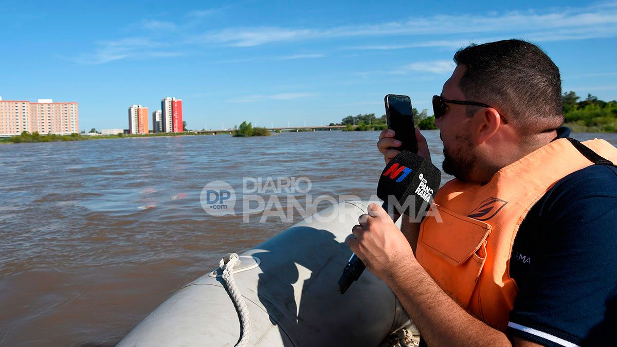 El notable aumento del caudal en las últimas 48 horas transformó por completo el paisaje. Ingresan 560 metros cúbicos de agua por segundo y rige la prohibición total de ingreso al río.