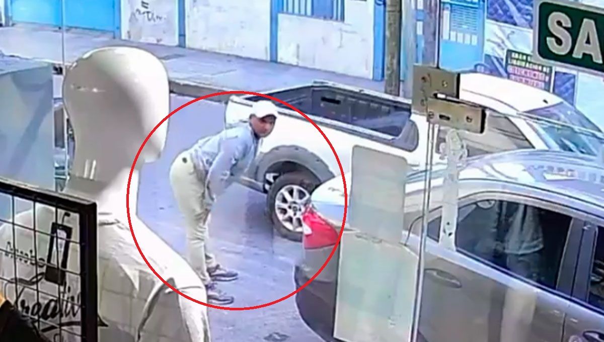 De acuerdo con el registro fílmico, el malviviente observa previamente la situación, estaciona su motocicleta cerca de la camioneta Fiat Strada, finge estar distraído y, en cuestión de segundos, abre una de las puertas del vehículo para llevarse la pertenencia y darse a la fuga.