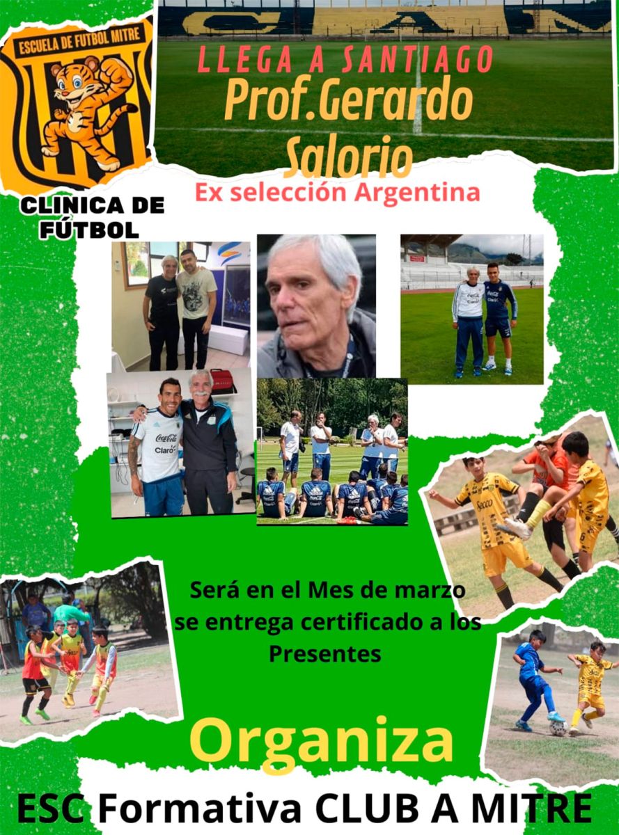 La Escuela Formativa del Club Atlético Mitre anunció la organización de una clínica de fútbol con el reconocido profesor Gerardo Salorio, histórico integrante de las divisiones juveniles de la Selección Argentina y cinco veces campeón mundial en categorías formativas. La actividad se realizará en el mes de marzo, con fecha a confirmar en los próximos días, y combinará instancias teóricas y prácticas.