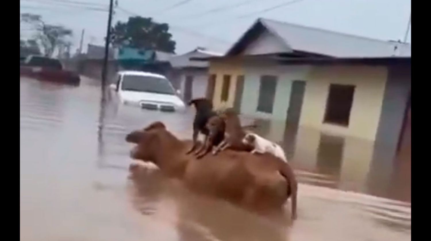 Durante las graves inundaciones que han afectado amplias zonas del Caribe colombiano, una escena captada en video mostró cómo varios perros se subieron al lomo de una vaca en medio de la crecida para evitar ser arrastrados por el agua, en un acto de aparente solidaridad animal que se volvió viral en redes sociales.