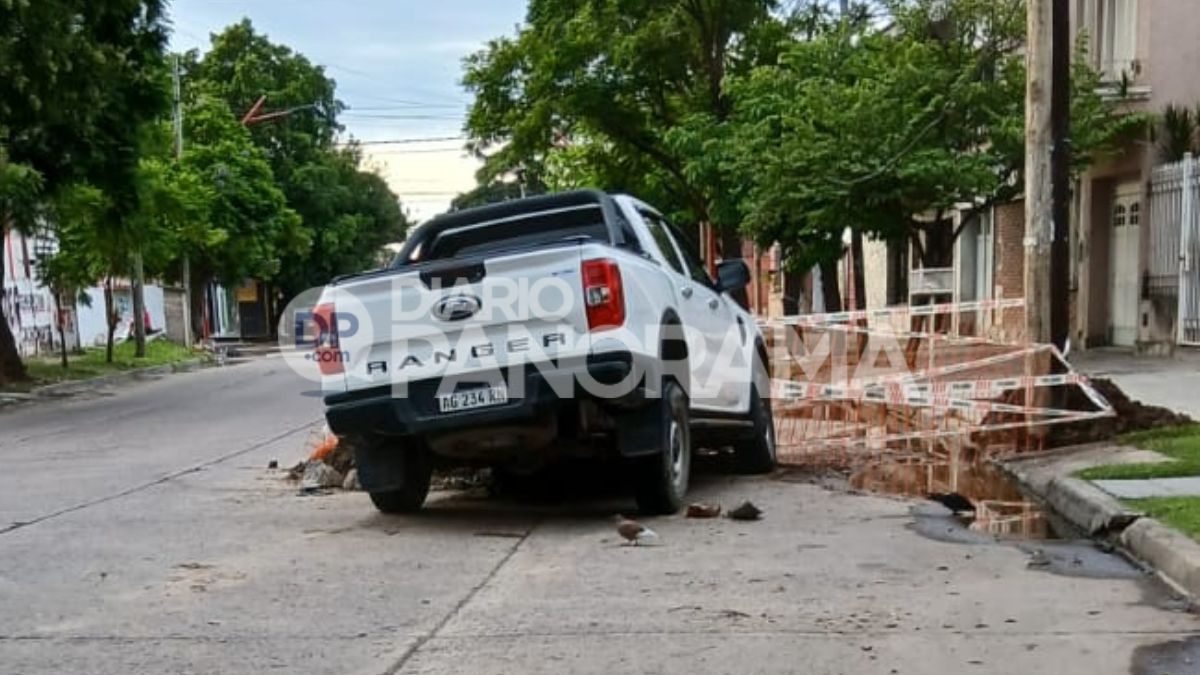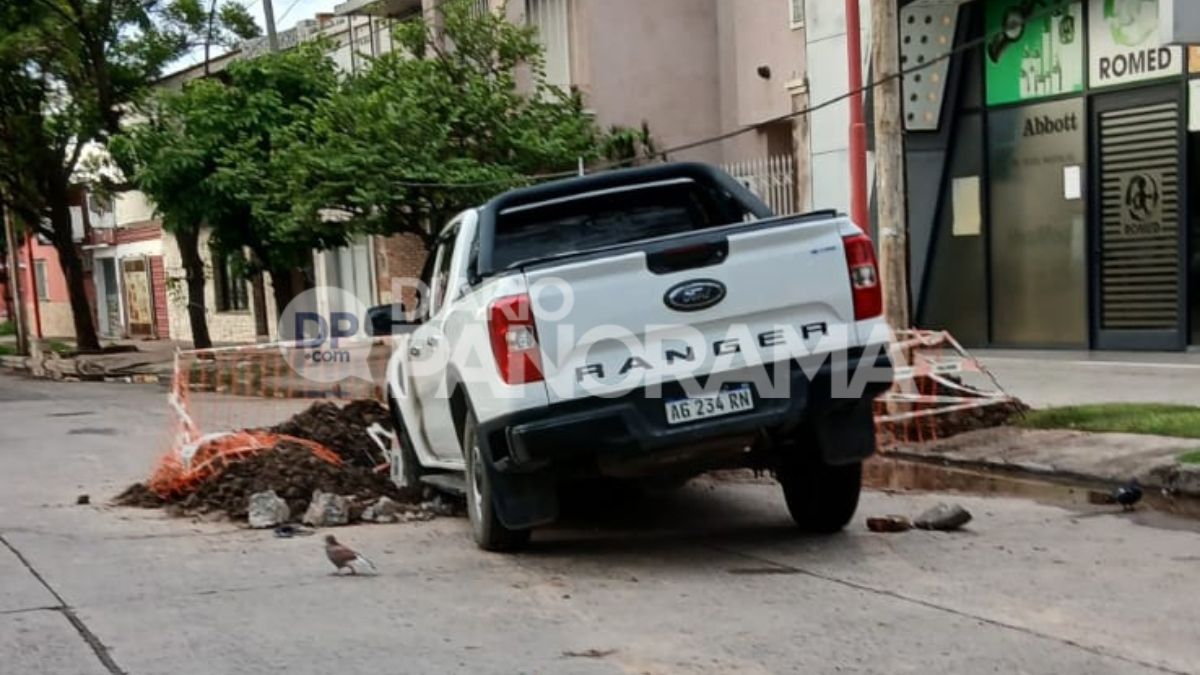 Por causas que se investigan, una camioneta Ford Ranger 4x4 se estrelló contra un montículo de tierra correspondiente a una obra vial que se encuentra señalizada sobre la mencionada arteria.