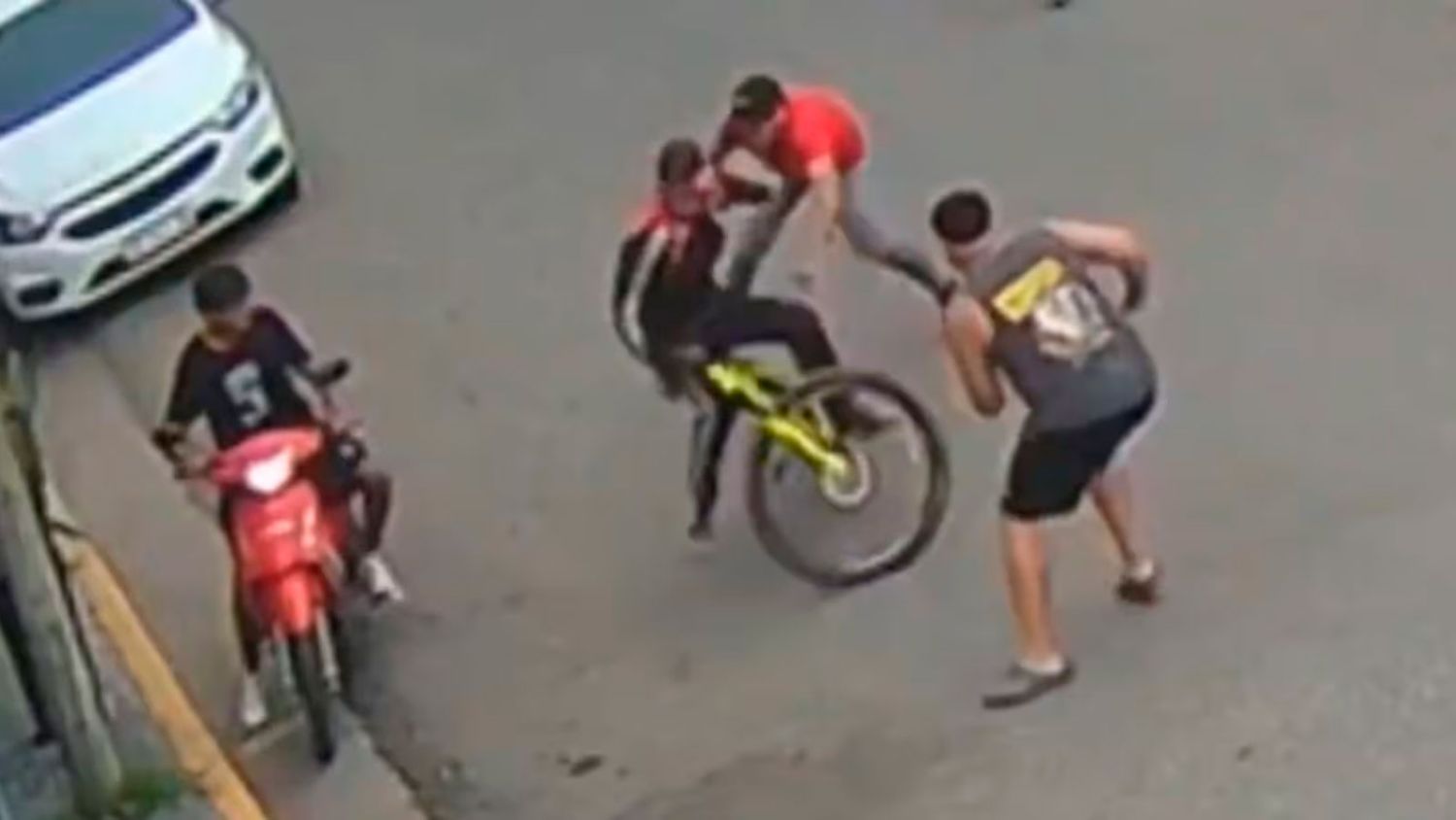 Enseguida, un grupo de al menos cuatro personas se interpuso en el camino del delincuente y a golpes logró tirarlo de la bicicleta. Tras ello, varios de ellos se abalanzaron sobre él y comenzaron a golpearlo.