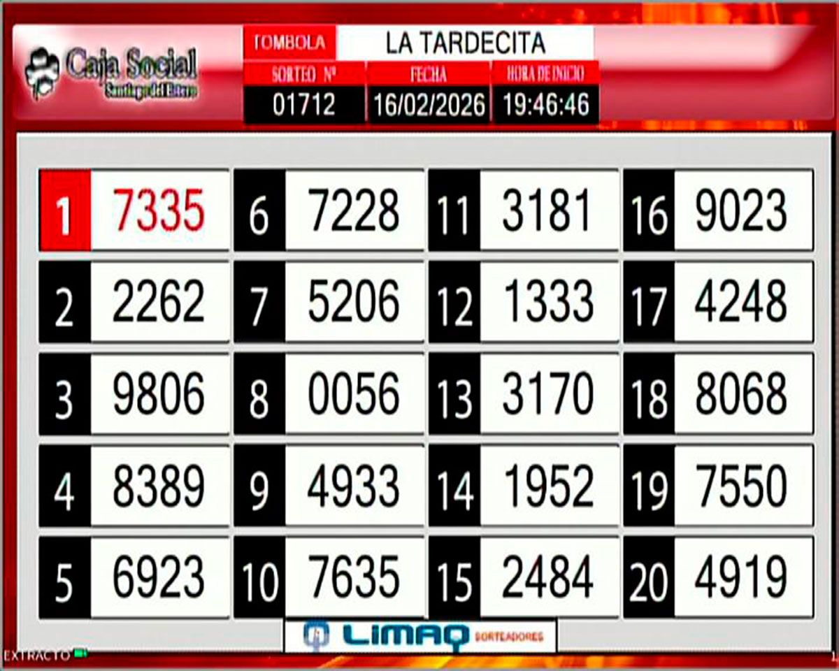 Tómbola Santiagueña: los números de este lunes 16 de febrero del 2026