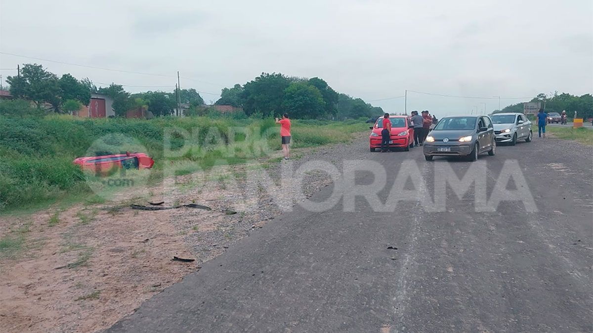 El automóvil, un Ford Fiesta color rojo, terminó volcado en una cuneta, mientras que el motociclista quedó tendido a un costado de la calzada con visibles lesiones. Fue identificado por un familiar como Oscar Sánchez, de 40 años, con domicilio en la localidad de La Aguada.