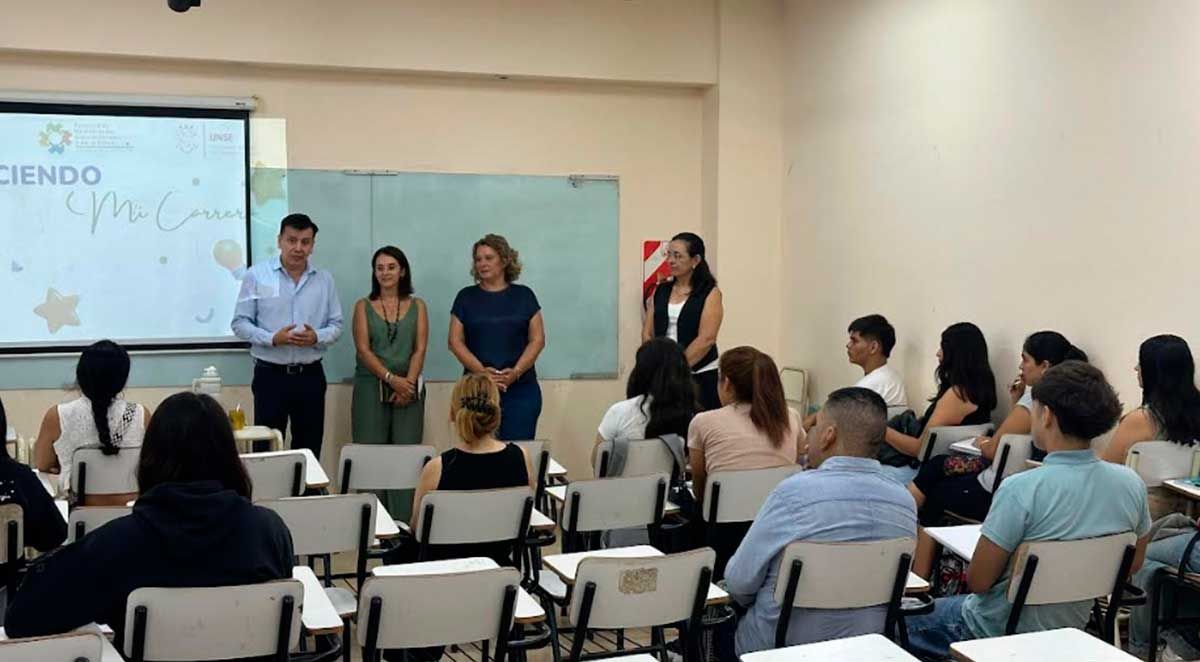 La Universidad Nacional de Santiago del Estero dio la bienvenida a los ingresantes de las carreras de Educación para la Salud, Enfermería y Obstetricia, en una recorrida por las aulas encabezada por el rector Marcelino Ledesma, junto a la vicerrectora Fernanda Mellano, la decana de la Facultad de Humanidades, Ciencias Sociales y de la Salud, Sandra Moreira, y la vicedecana Carla Ferreyra.